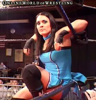 Jazz locks in an arm bar and increases the pressure, then hits Luscious with two arm drags and a drop kick that sends her to the floor to escape. After looking for sympathy and failing to find it, Luscious gets back in the ring and asks for a test of strength, which meets with catcalls from the fans. Jazz powers her to her knees, and Luscious resorts to a headbutt to the midsection. Jazz tosses her out of the ring and follows, bashing her hear on the ring apron, and them slamming her into the ring rail. Jazz batter Luscious for a while longer before returning to the ring, where she tries for a pin but can’t get three.