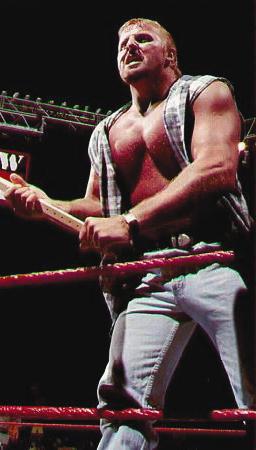 With the Hart Foundation disbanded, Owen was tagged up with Jeff Jarrett. They were managed by the busty, blonde valet Debra, and the writers kept coming up with increasingly sexual storylines. They ranged from Owen having his genitals fondled by the camp Goldust to having a scripted affair with Debra. Unwilling to put his family through the charade of an affair, Owen refused. He was walking a fine line with Vince, who essentially had creative control over all the characters in the WWF. But Owen refused to compromise his integrity and take part in any storyline he felt was sexually inappropriate, and eventually he was saddled with the old Blue Blazer gimmick. Possibly he saw this as a punishment for turning down the Debra storyline, but it didn't matter. Owen was so disillusioned with wrestling by this stage that he was just waiting out his contract, and did not care how stupid he looked as long as he did not compromise his integrity.