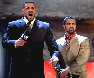 Meanwhile, on SmackDown!, Teddy Long gleefully teased JBL by hinting that a SmackDown! Championship had been created and that JBL may be its first recipient. Allowing JBL to make an arse of himself in the ring, Teddy let JBL dig himself in deeper and deeper as one by one, Booker T, Chris Benoit and the Big Show made their way to ringside to protest. Eventually Teddy appeared, and announced that the Championship would be decided in a 5-way that also included the Undertaker. JBL's protests were drowned out by SmackDown!'s latest draft pick - Muhammad Hassan complete with the ever-present sidekick, Daivari (can Hassan chew his food without Daivari assisting?) whereupon Teddy squashed Hassan's now very tired claims of inequality and booked him in the match for the title, making it a 6-way.