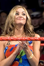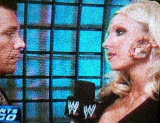 The Myth of the Mutant Mole.: When I first saw Jillian Hall in Ohio Valley Wrestling she was a chronically cute hyper-active babyface who could mat-wrestle just about as good as any woman I’ve ever seen. Jump forward two years when she made her debut in the WWF she was completely made-over into a WWE-bimbo, saddled with one of the most ridiculous gimmicks since the stuttering Matt Morgan. She joined Smackdown! as the publicist for MNM. Her whole gimmick is that she’s hot, but she has some weird deformation on the side of her face that makes other people uncomfortable. Sounds like a winner! |