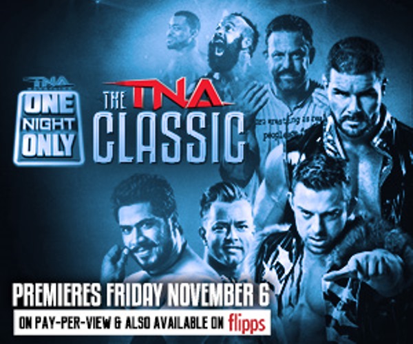 Sixteen stars will enter the ring for a chance at glory. Join Austin Aries, Bobby Roode, Bram, Davey Richards, DJZ, Eric Young, The Great Sanada, Gunner, Kenny King, Khoya, Knux, Mr. Anderson, MVP, Robbie E, Rockstar Spud and Sonjay Dutt. Also, TNA Knockouts Rebel, Brooke and Taryn Terrel join forces to take on Madison Rayne, Angelina Love and Havok. TNA Wrestling presents One Night Only: TNA Classic premiering Friday November 6 8e/5p on pay-per-view.