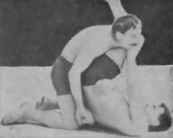 - ~~~This started when Burned lost a match to Ed Lewis’ Stranglehold, and Burns vowed to strenthen his neck muscles..