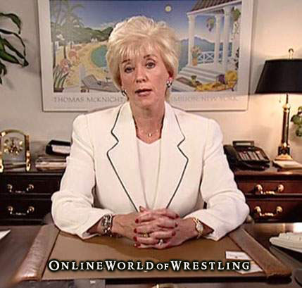 - August 18, 2003 – RAW: Linda McMahon issued a live statement but was interrupted when Eric Bischoff shows up at her house!
