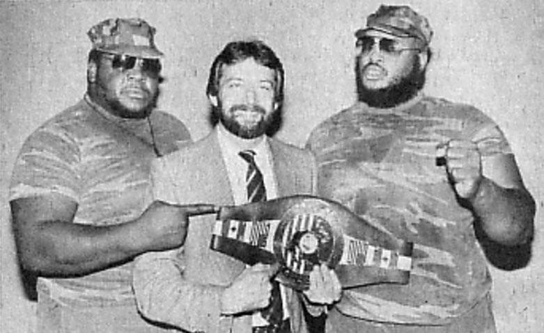 Jay Ambler wrote: “Gentleman” Jim Holiday primarily managed the Zambaui Express during their run in Eddie Graham’s Florida wrestling promotion (CWF) in the early-mid 1980s. Besides the Zambaui Express, Holiday also acted as a manager for Abdullah The Butcher when he too did a stint in Graham’s territory. The angle used by Holiday and The Butcher was the offer of $10,000 cash for anyone who could defeat him. Holiday was often seen carrying a briefcase that contained the money.