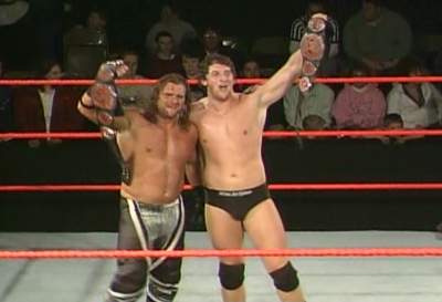 July 12, 2008--FCW: Joe Hennig & Gabe Tuft w/Jimmy Hart defeated The Empire w/Bryan Kelly to win the FCW Tag Team Titles.