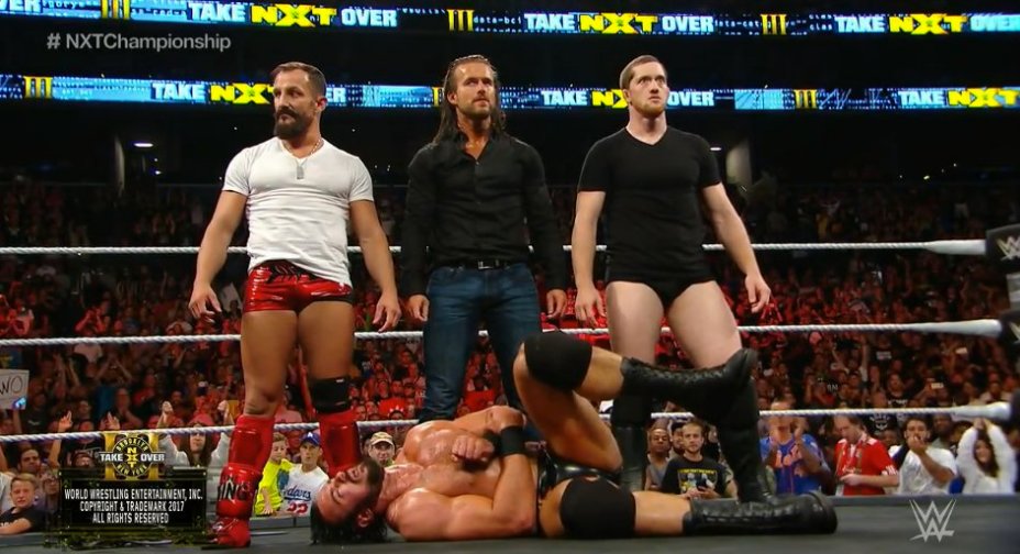 McIntyre celebrates his title win after when Bobby Fish and Kyle O’Relly show back up. They distract McIntyre as the debuting Adam Cole attacks McIntyre from behind! Cole, Fish and O’Reilly lay out McIntyre and stand tall as Cole holds up the NXT Title belt as the show closes.