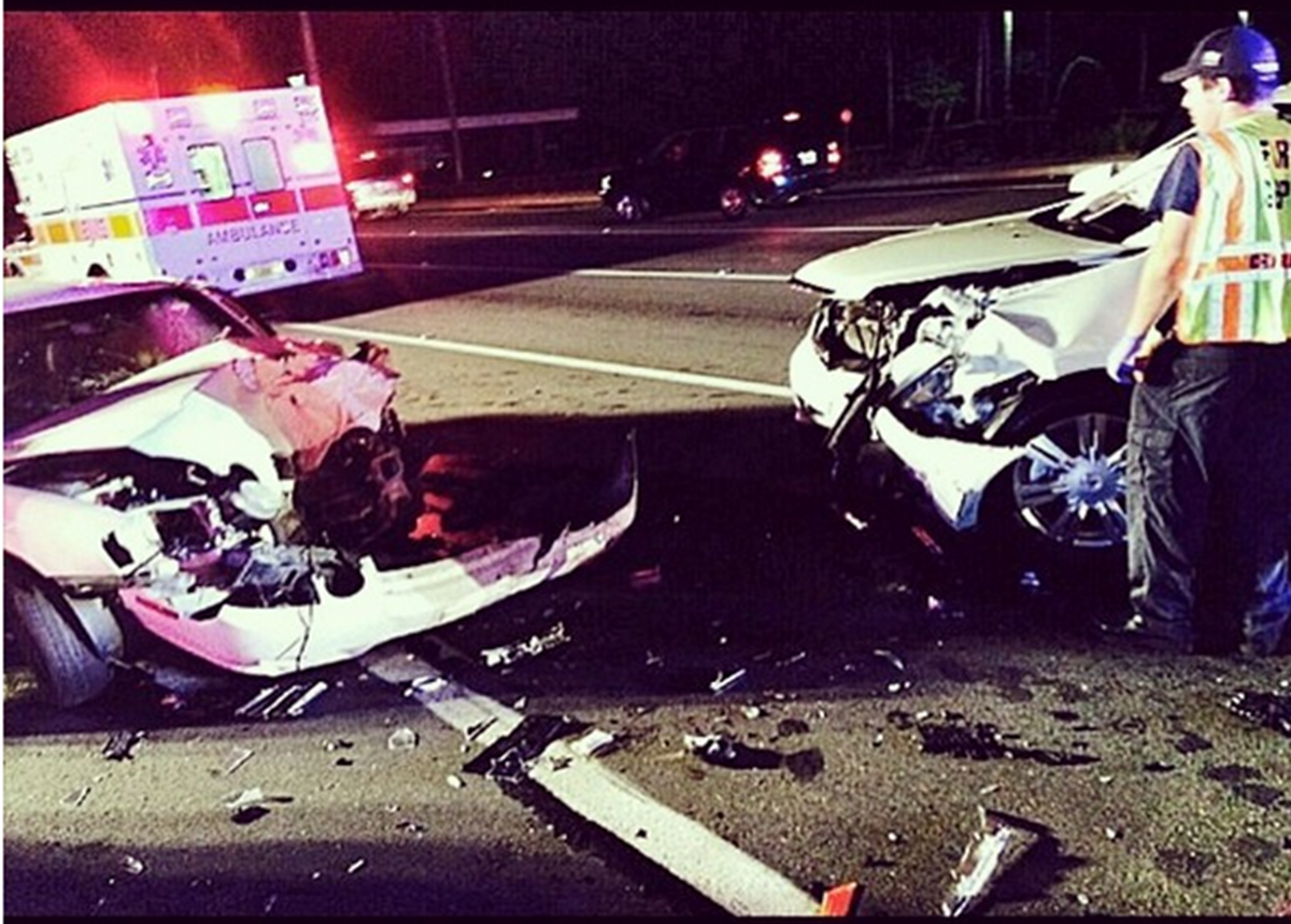 Johnson posted a horrifying picture of the wreck to Instagram on Sunday.